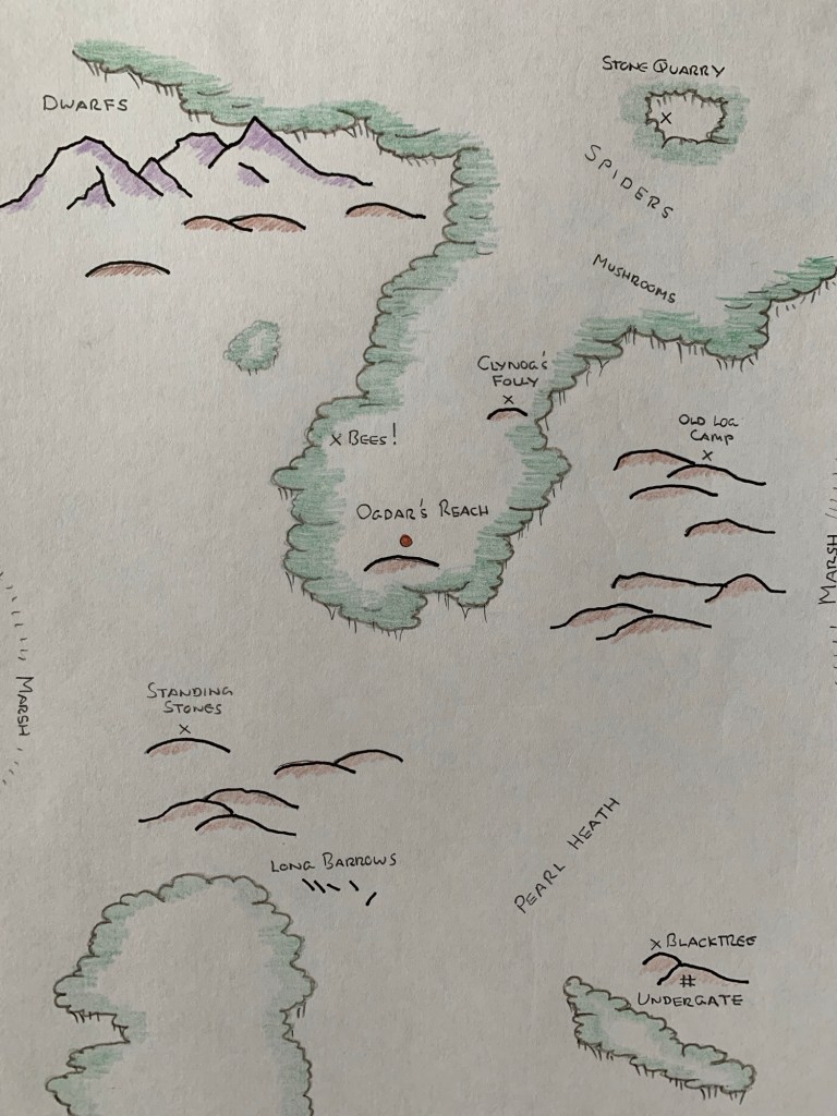 Our campaign kicks off in the remote, impoverished village hill fort of Ogdar’s Reach. A village run by a visionless group of elders, with dwindling economic options, and beset by mysterious monsters on every side, Ogdar’s Reach needs some heroes. Fortunately, a group of young, bored, and restless hoodlums are determined to makes something happen, or die trying…